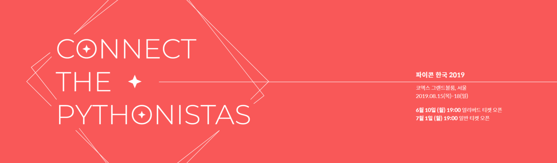 파이콘 한국 2019의 슬로건은 "Connect the Pythonistas"입니다.