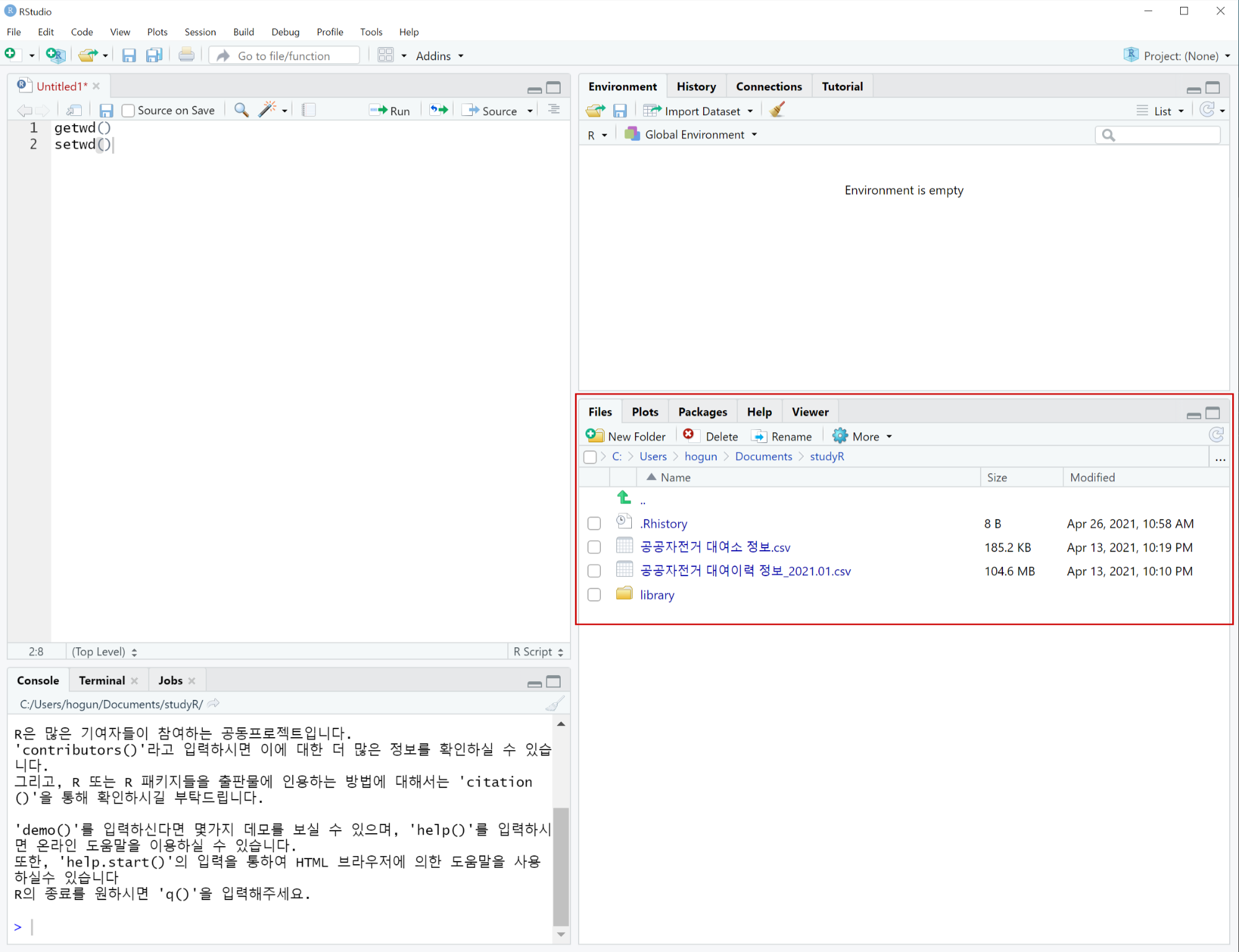 자동으로 Console에 setwd가 실행되는 것을 확인 하실 수 있습니다.