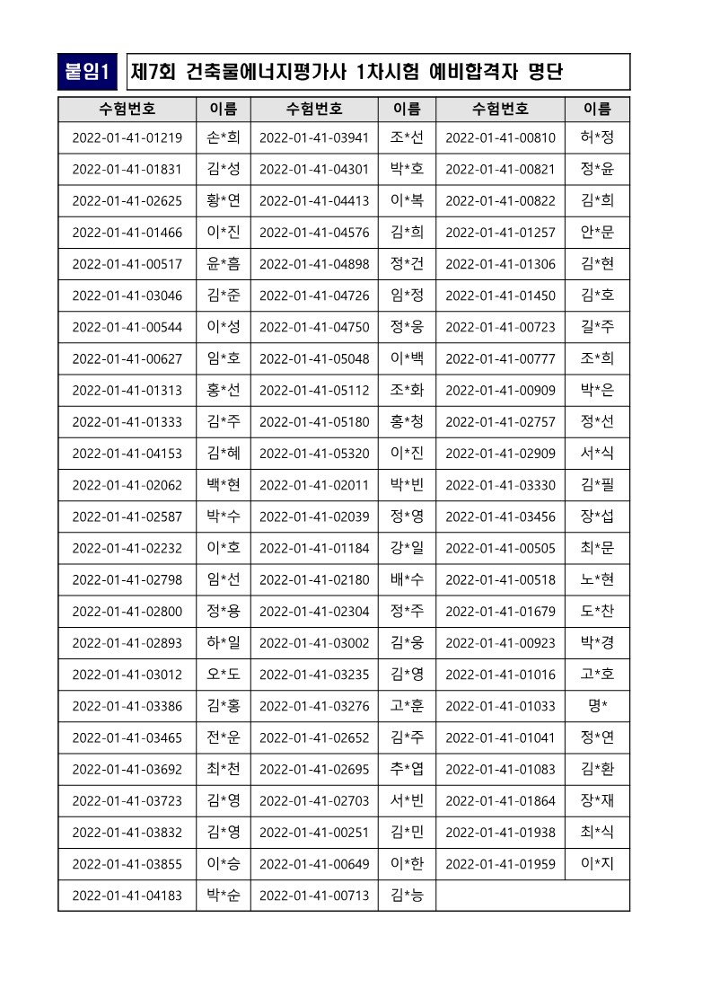국토교통부 공고 2022-972호로 2022년도 건축물 에너지평가사 제1차 시험 합격예정자 발표가 있었습니다.