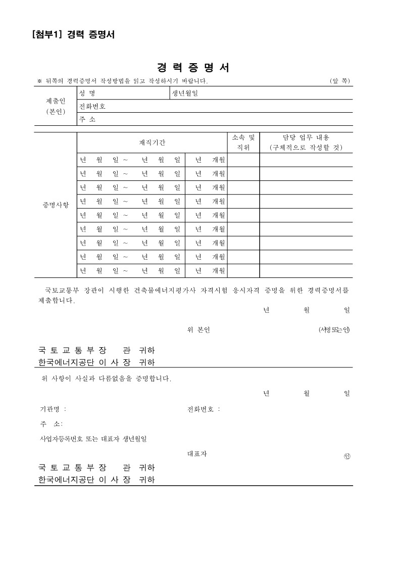 - 협회 가입이 되어 있지 않아도 각회사에서 경력증명서를 받을 수 있다면 경력 인정이 가능하다는 점은 다른 자격증 대비 에너지 평가사의 장점인거 같습니다.