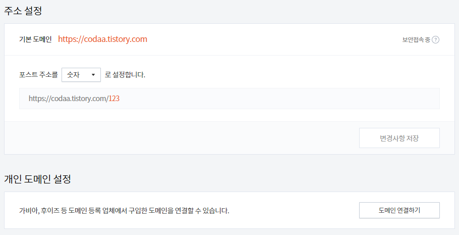 기본 도메인을 https://codaa.tistory.com에서 https://pante.tistory.com로 변경하려고 했는데,,,
