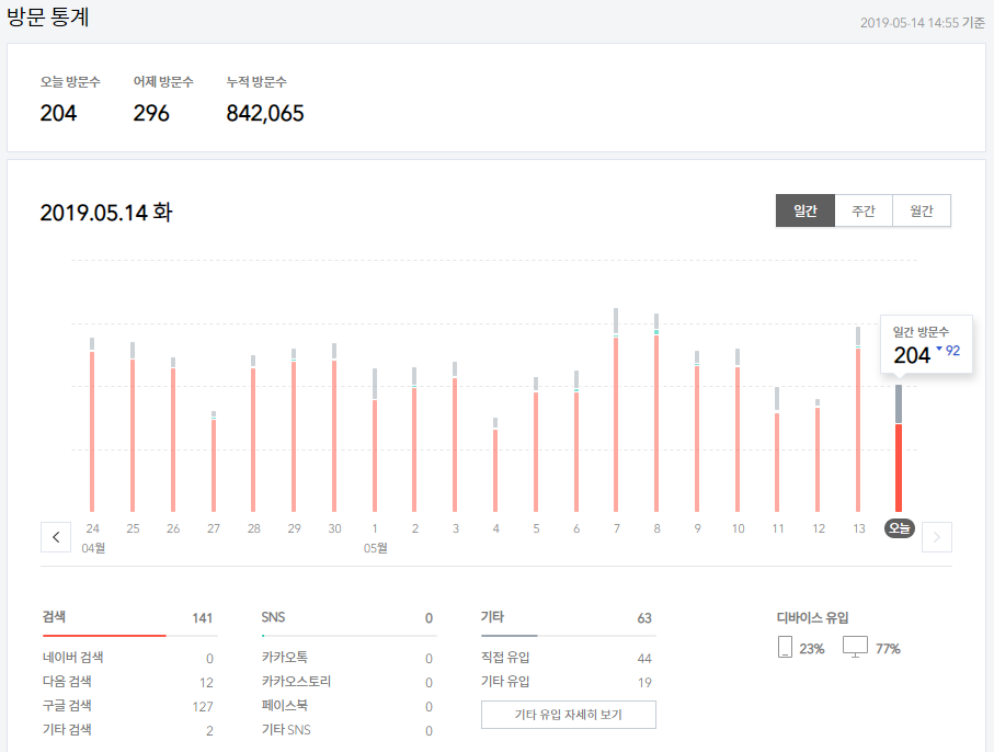 하지만, 그런 블로그에 올라온 글들은 시간이 지나면, 금새 방문 통계가 내려가는 것을 알 수 있습니다.
