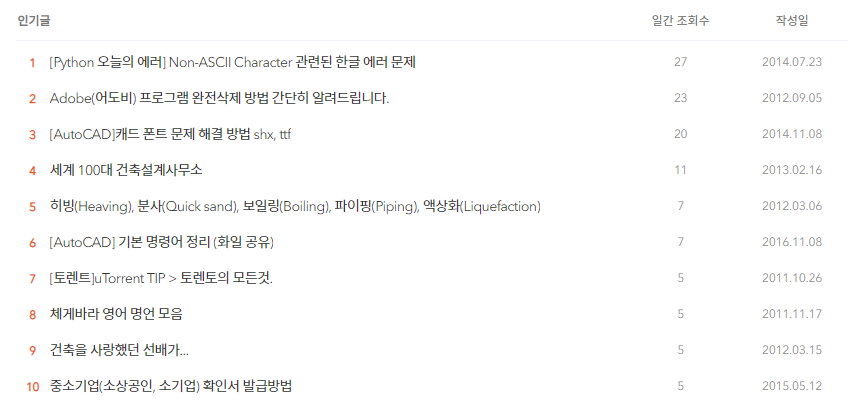 5년에서 8년전에 쓴 글들이 아직도 유효한 조회수를 만들어 낸다는 것입니다.