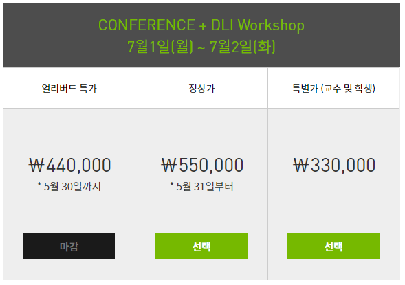 7월 1일에는 DLI Workshop이 열리고 7월 2일에는 CONFERENCE가 있습니다.