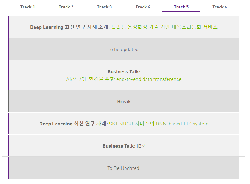 2019년에 개최될 이번 행사 역시 AI, 딥 러닝, 자율 주행 자동차, 고성능 컴퓨팅(HPC), 로보틱스 등 다양한 분야의 국내외 최고의 전문가들과 연결되고, 가장 최신 기술 트렌드와 사례를 직접 확인하고 싶은 분들에게는 놓치지 말아야할 최고의 AI 컨퍼런스 입니다.
