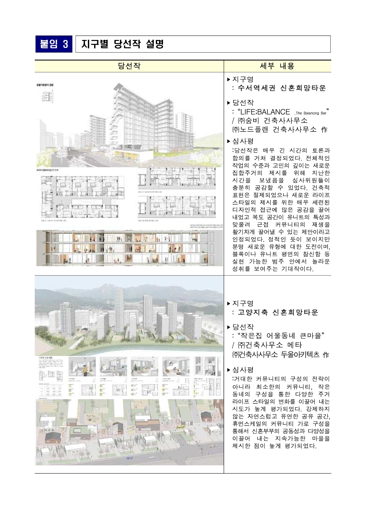 : 공공주택단지의 지역사회 내 분리, 커뮤니티 내 소통 부재의 문제를 극복하고, 친환경˙장수명 주택 등 지속가능한 가치를 담는 건축적 제안 요구