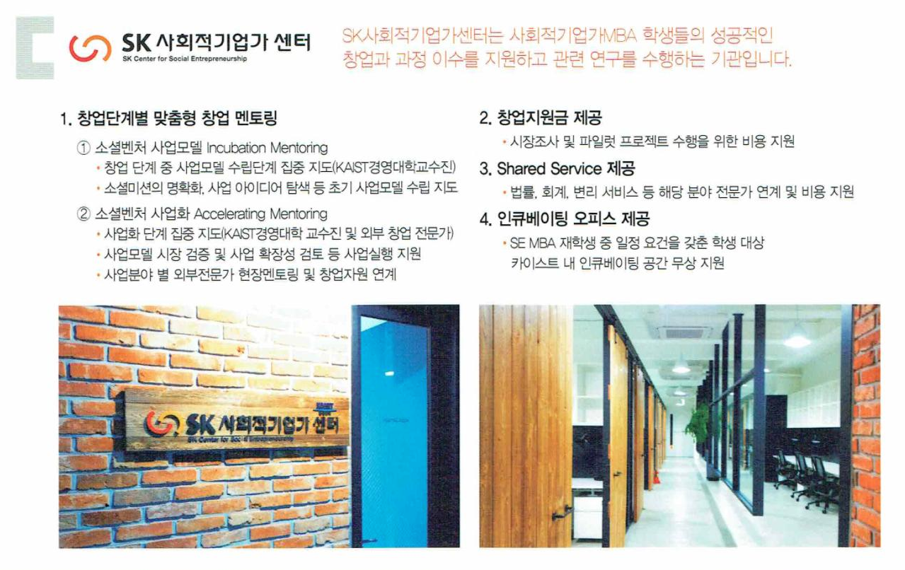 - KAIST경영대학 산하 SK사회적기업가센터 협력
