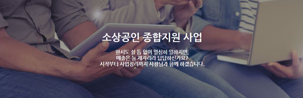 소상공인 종합지원 사업 한시도 쉴 틈 없이 열심히 일하지만, 매출은 늘 제자리라 답답하신가요? 시작부터 사업정리까지 사장님과 함께 하겠습니다.