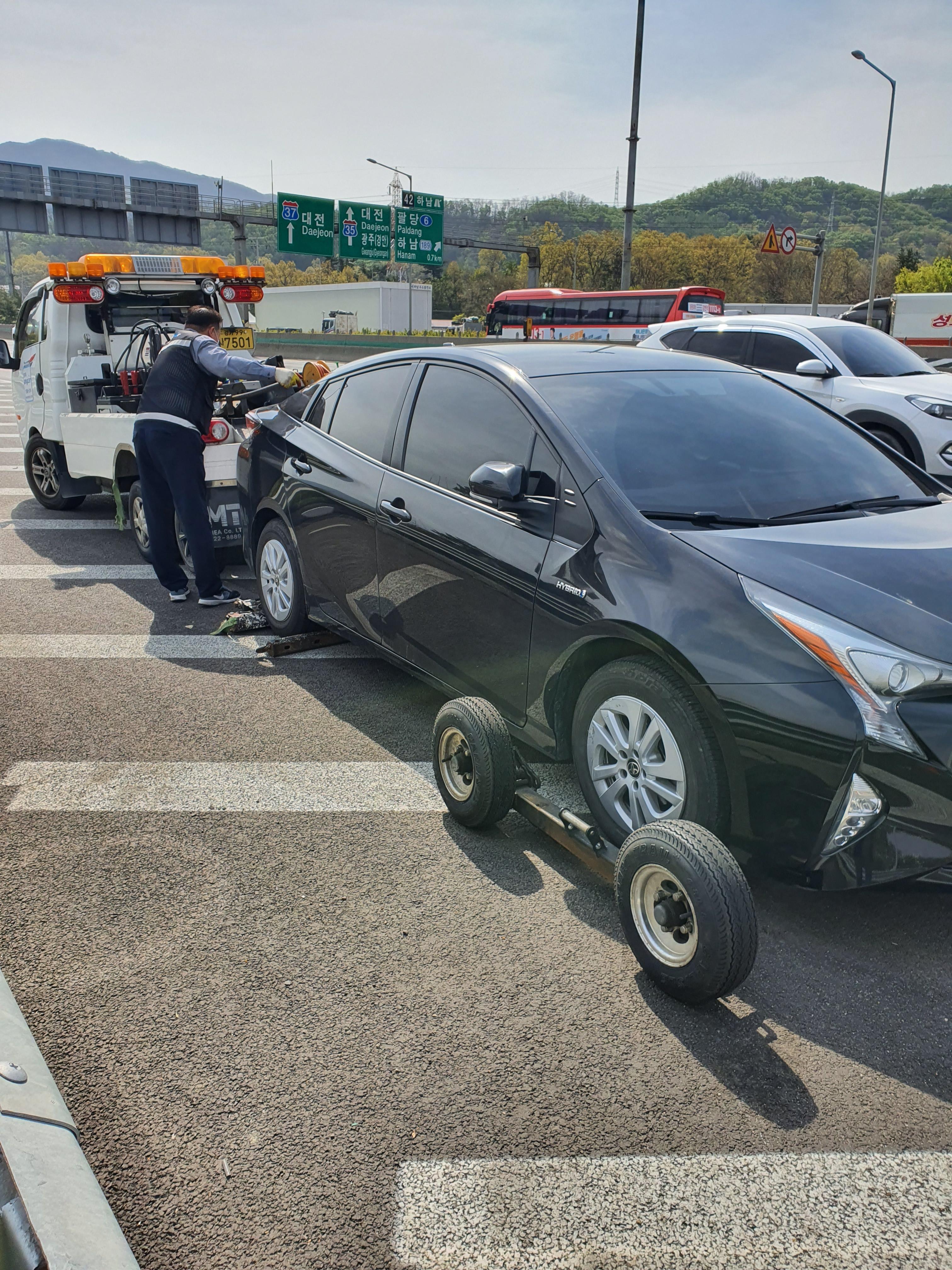 어쩔수 없이 견인을 요청드리고 렉카차에 실려갔습니다.