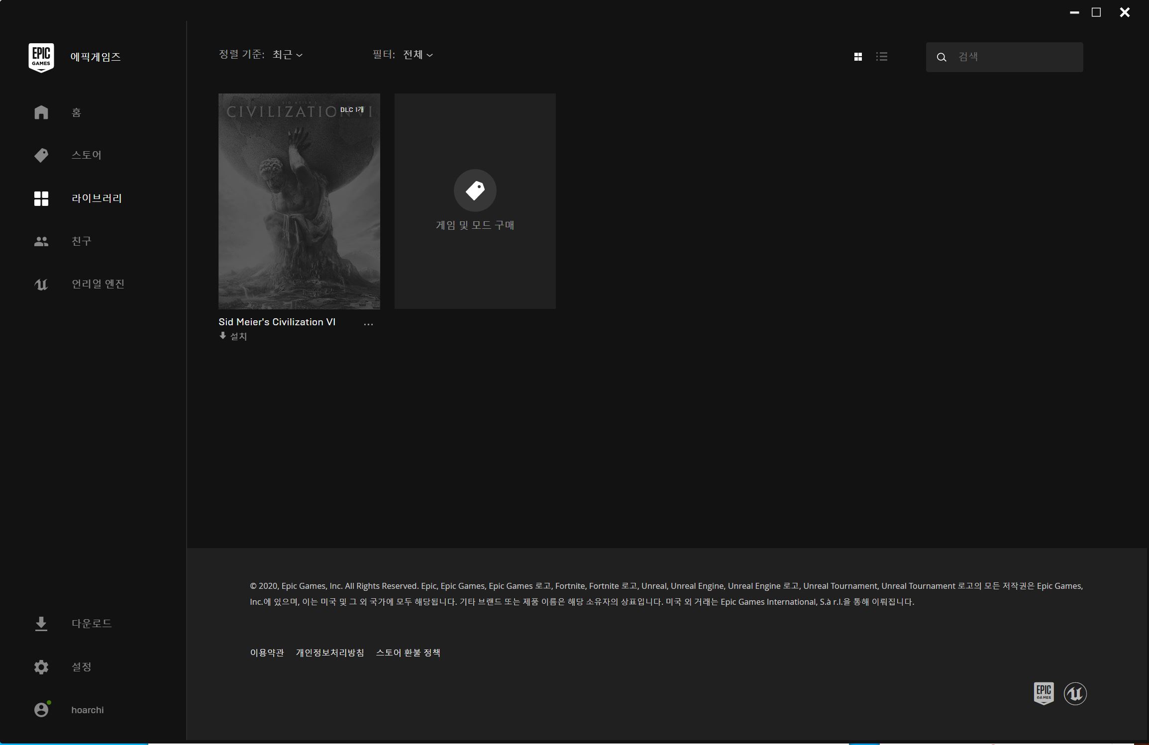에픽게임즈를 처음 설치하면,