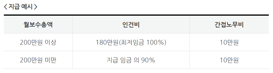 ○ (지원금액) 청년이 지급받은 임금수준에 비례하여 인건비 지급(최대 180만원)하고 간접노무비를 추가 지원