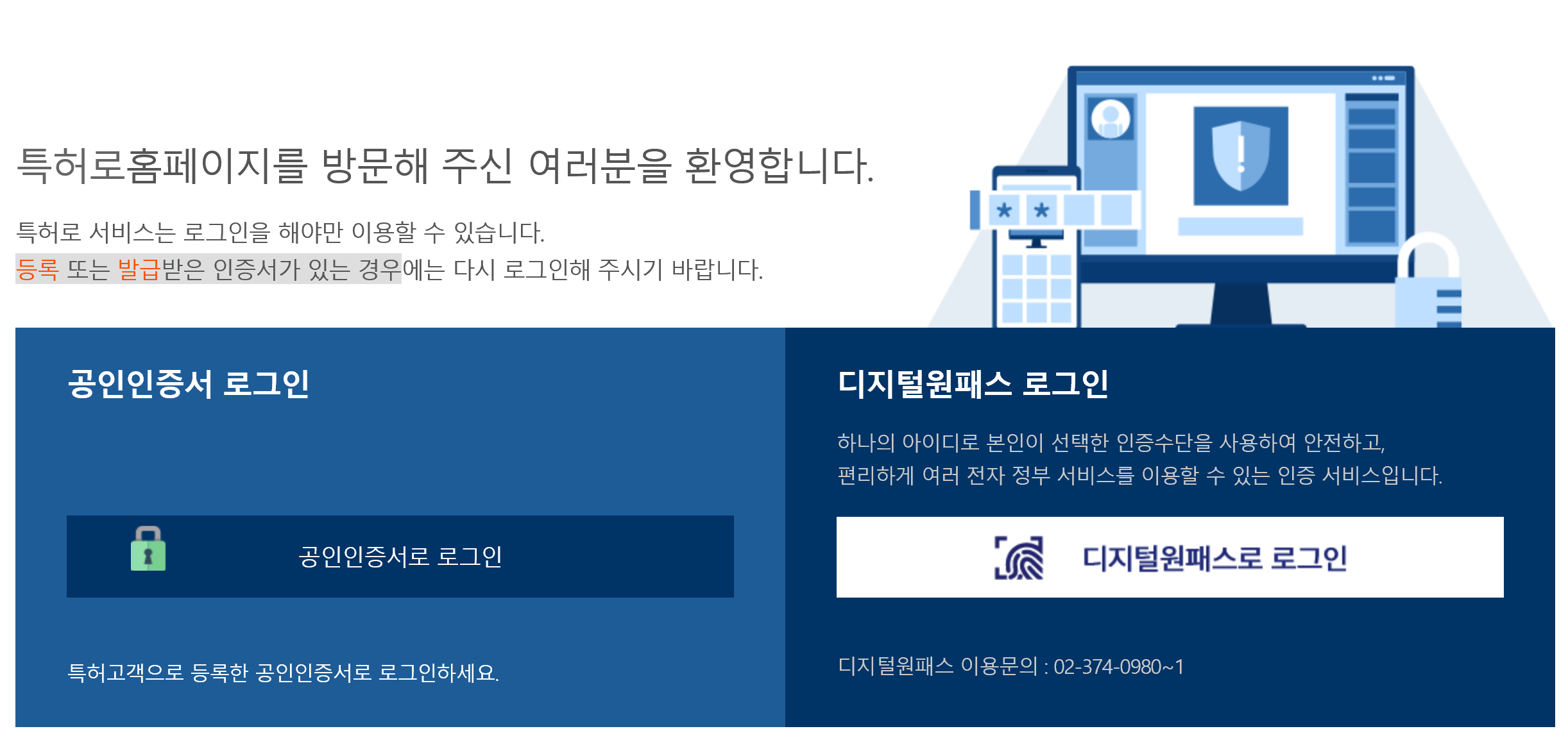 공인인증서 로그인과 디지털원패스 로그인 2가지 방식으로 가능합니다.