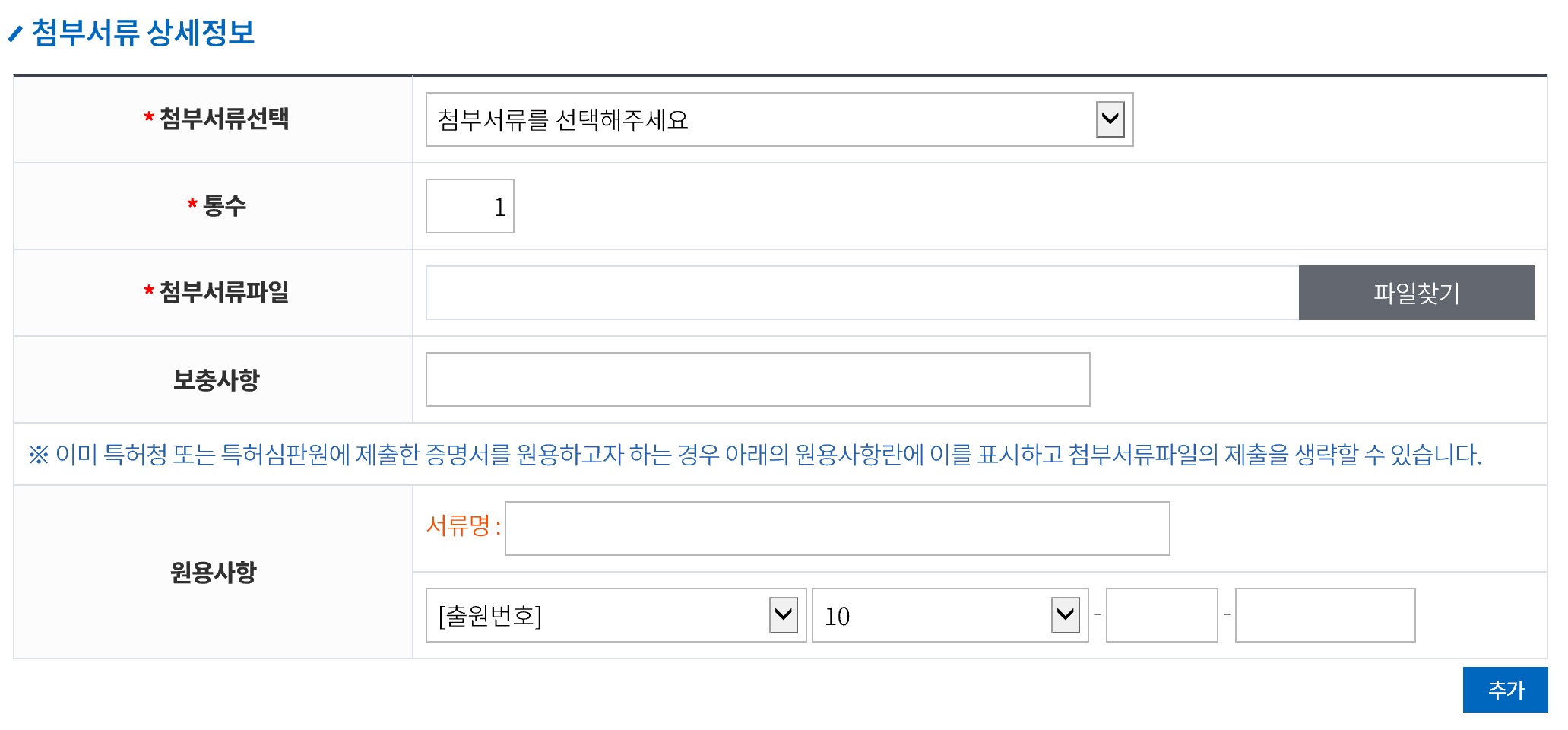 추가적인 첨부서류가 있는 경우에 파일을 업로드하여 등록합니다.
