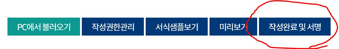 작성완료 및 서명 클릭 후 > 중복제출여부확인 > 온라인 제출 > 공인인증 하면 제출이 완료됩니다.