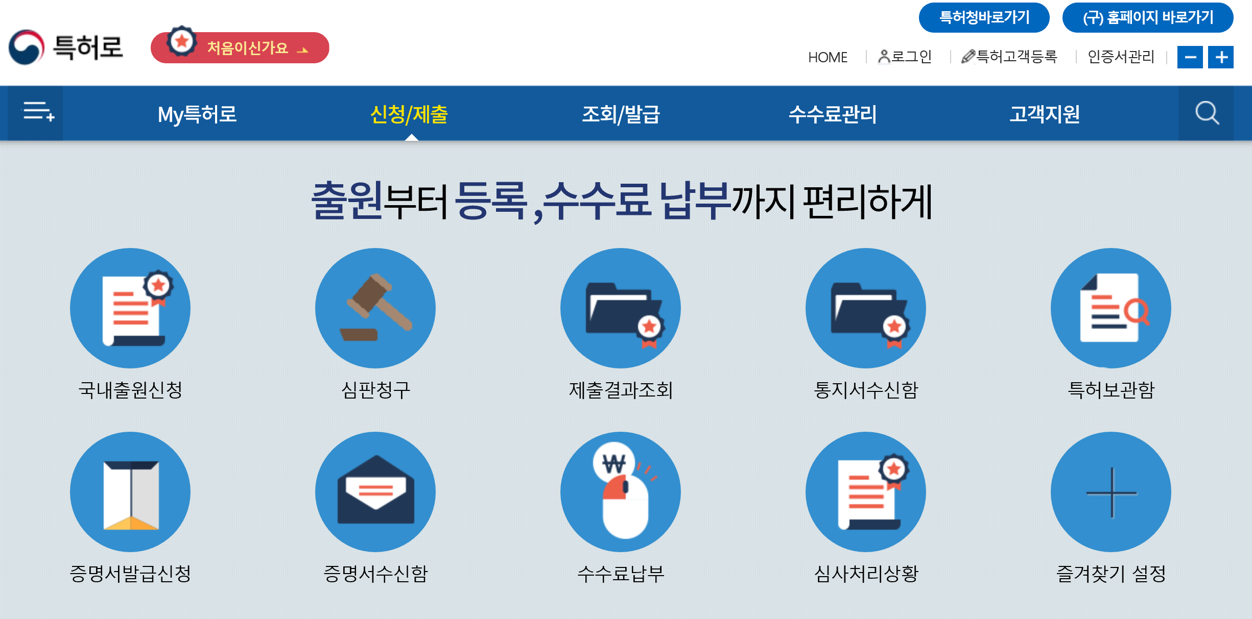 전에는 복잡한 프로그램을 설치해야 했는데, 이제 상표권정도는 간단하게 웹에서만 처리가 가능합니다.