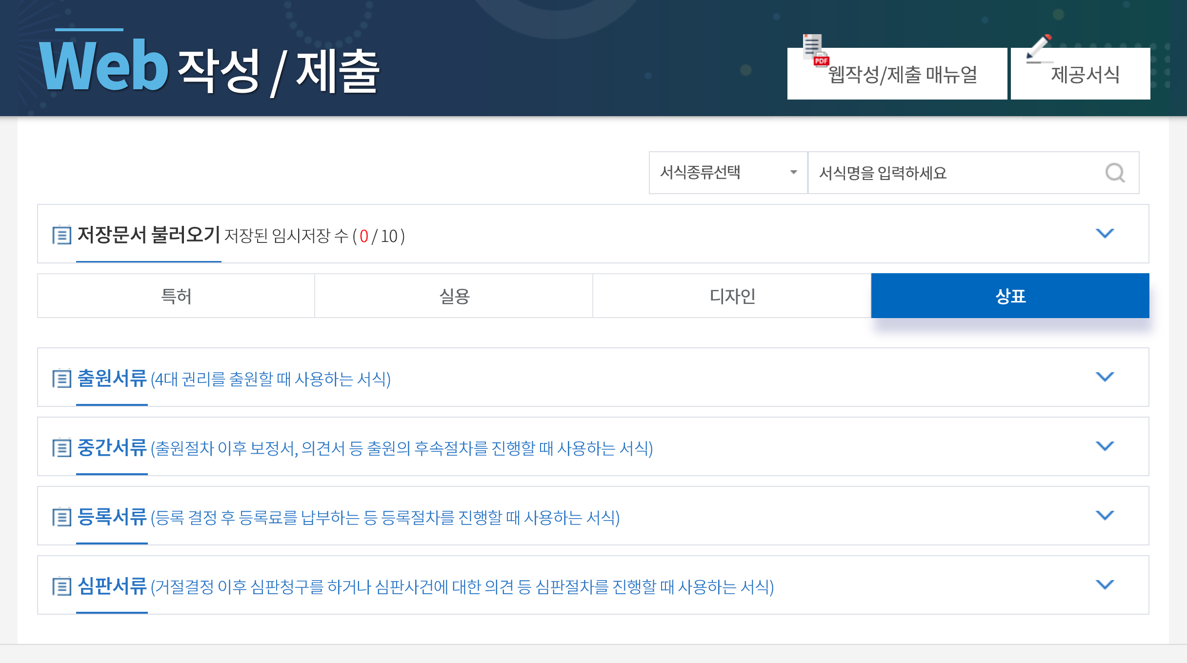 상표등록 2) 웹 출원 진행하기
