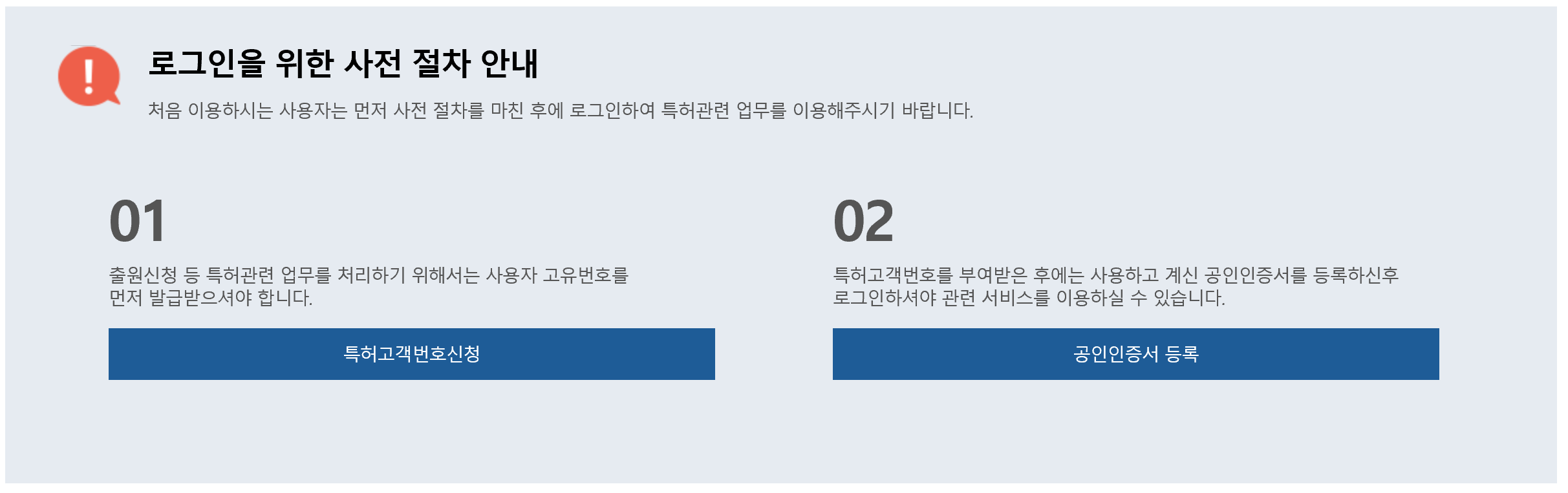 특허고객등록 후 공인인증서 사용등록까지 마치셨다면, 이제 로그인을 하시면 됩니다.