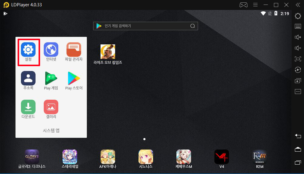 라오킹 앱플레이어 LD플레이어 속도 느려질때 속도향상 채굴앱 차단 제거 하기를 위해서는 우선 LD플레이어에서 설정으로 들어갑니다.