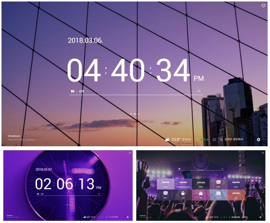 또한 웨일에서는 새탭의 흰 바탕과 사이트 바로가기가 뜨던 밋밋한 화면을,