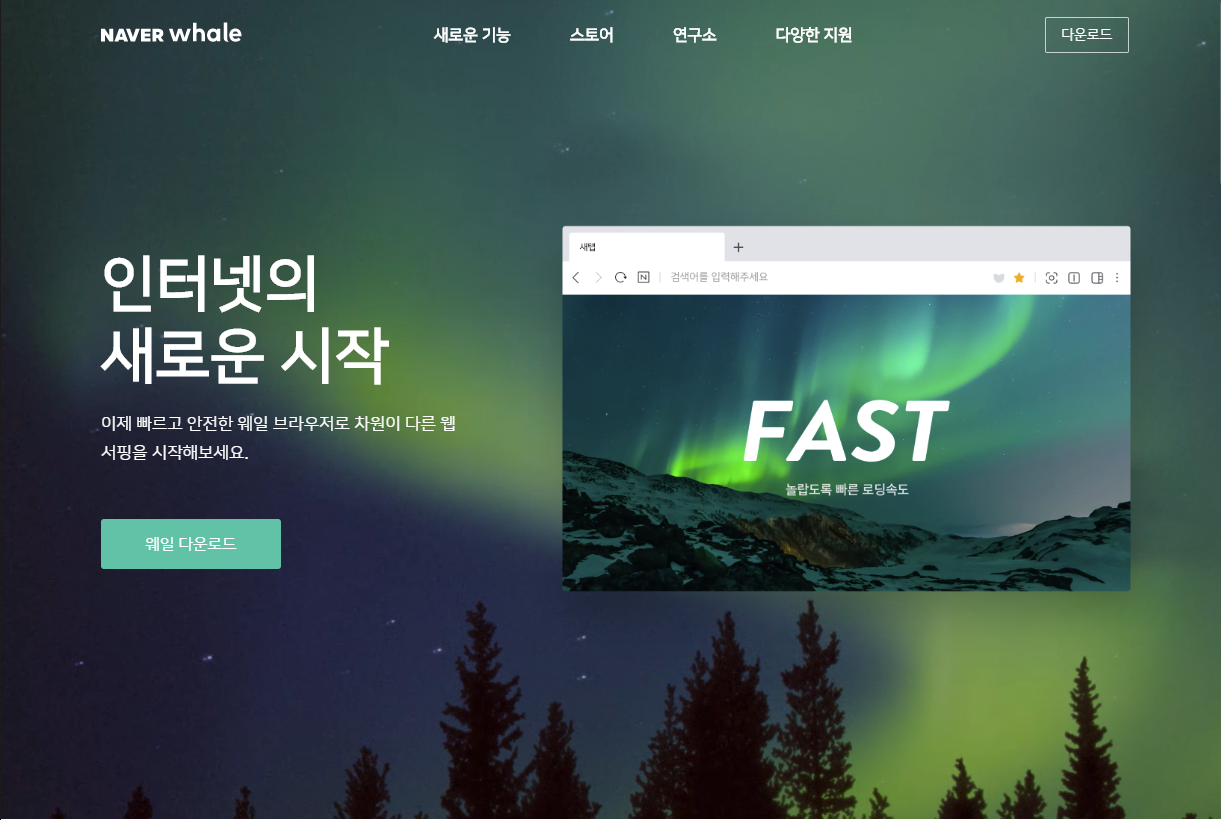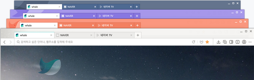 네이버 웨일이 감성 디자인으로 앞도적인 수려함을 뽑내고 있습니다.