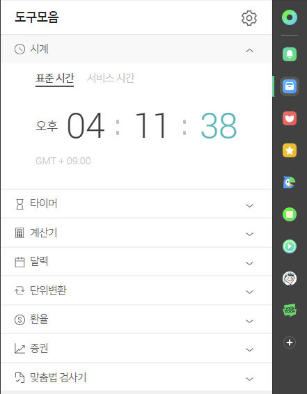 [표준시간] [타이머] [계산기] [달력] [단위변환] [환율] [증권] [맞춤법 검사기] 까지,,,