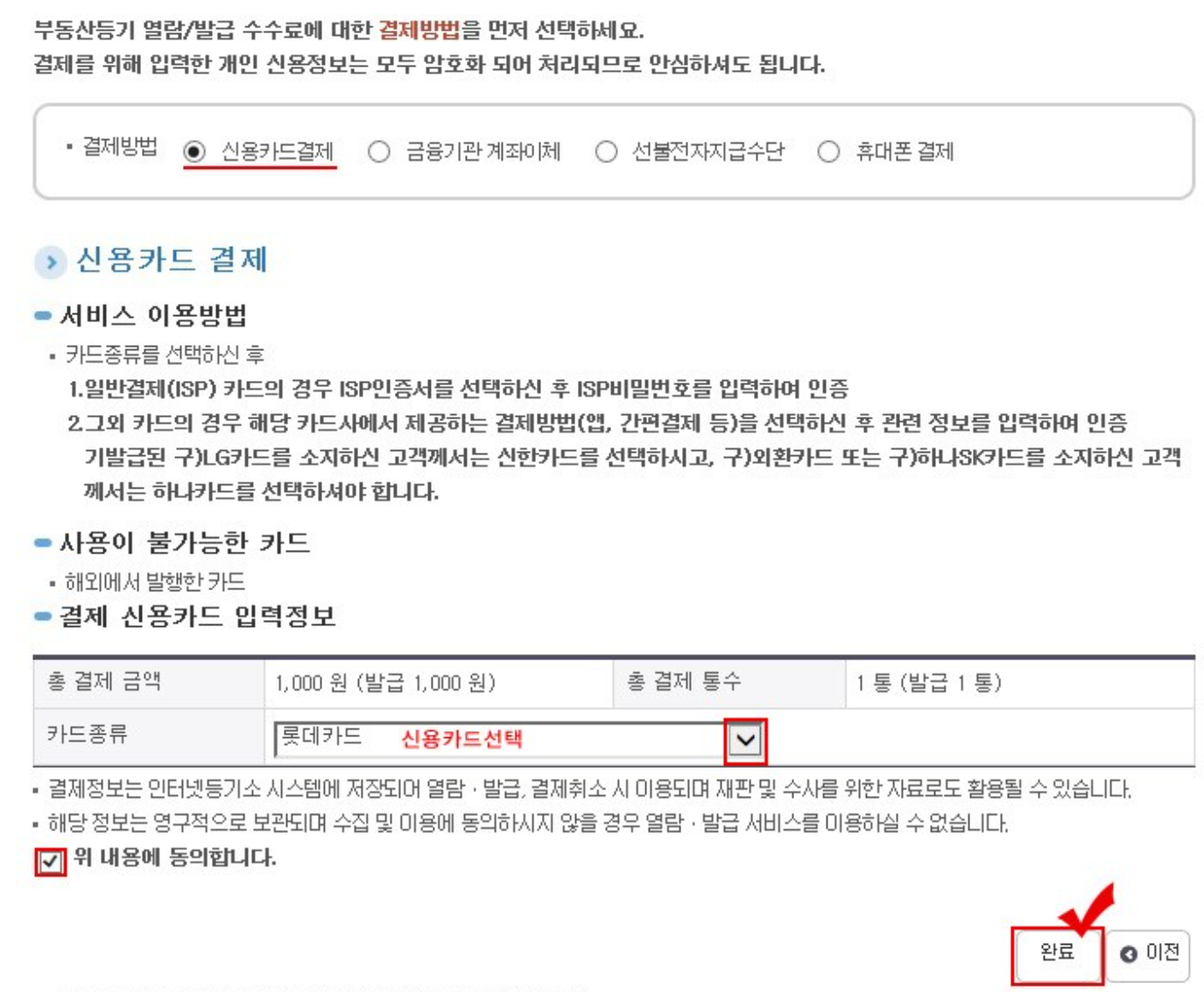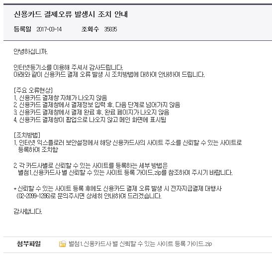 인터넷 등기소 등기 업무 중에 신용카드 결제를 할려고 보면 아무 것도 안나오는 오류가 있습니다.
