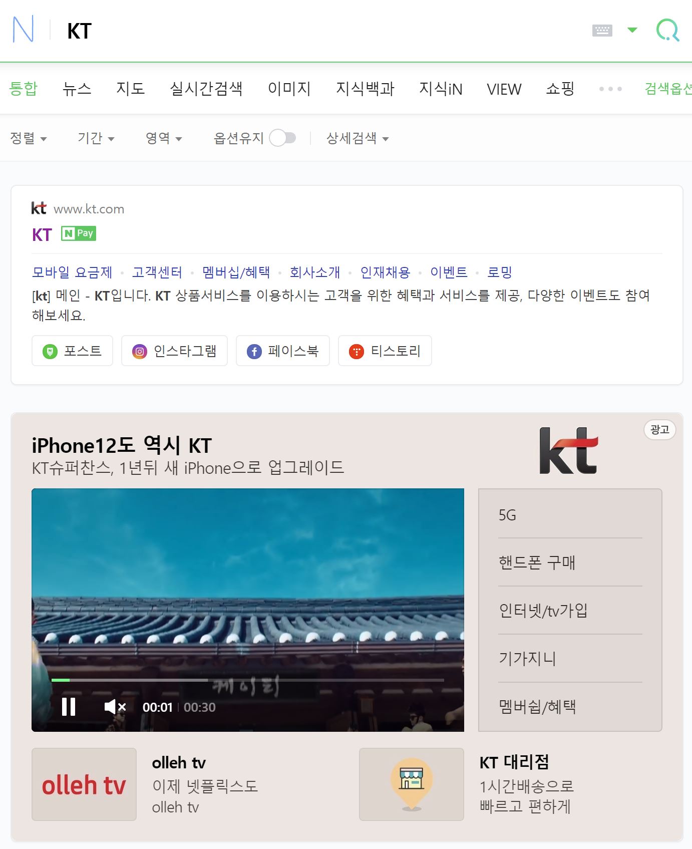 좌측 상단 kt로고 밑으로 로그인이 있습니다.