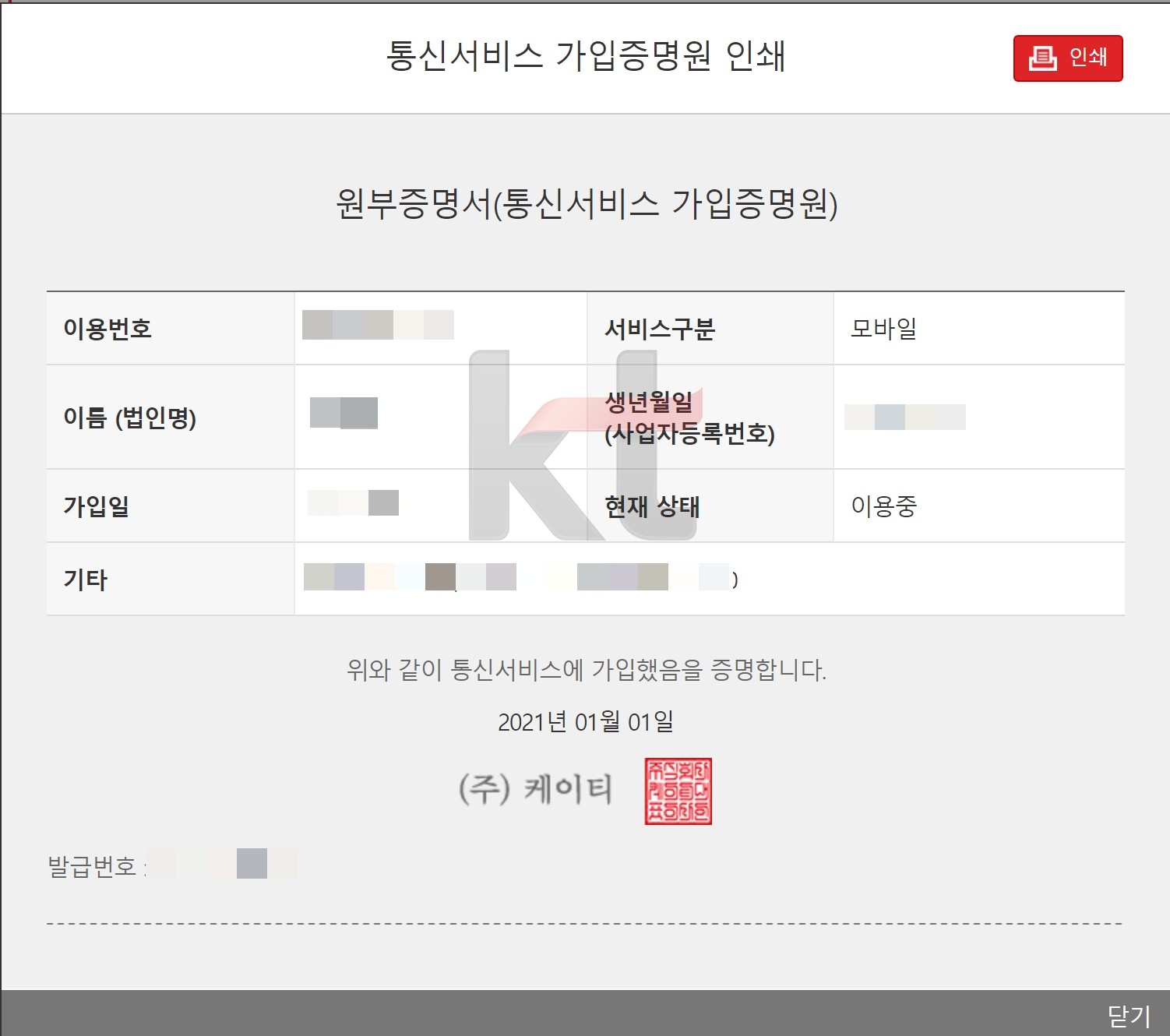 이상 KT 통신서비스 가입증명원 발급 방법이었습니다.