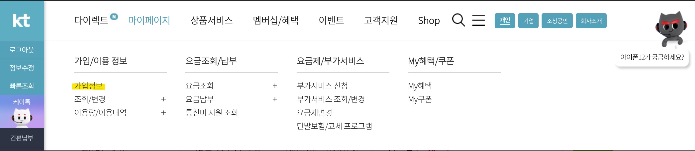 이중에서 제가 KT를 쓰고 있기 때문에 KT 원부증명서를 발급 방법을 알려드리도록 하겠습니다.