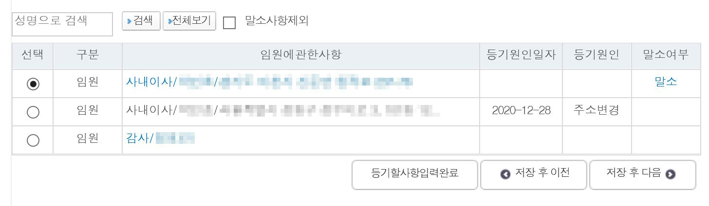 * 등기의 사유 > (대표)이사/감사 등의 임원사항 변경